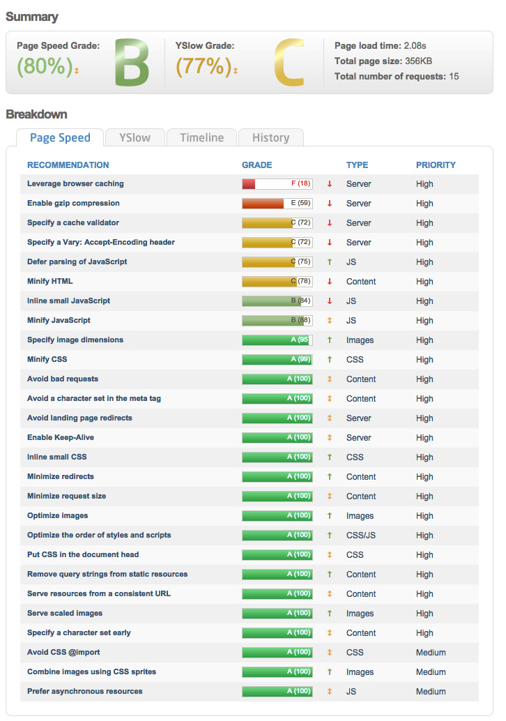 Without any additions to your server configuration and with optimised content (mainly in the form of appropriately sized images) this theme is capable of producing page speed results in the mid 80s.